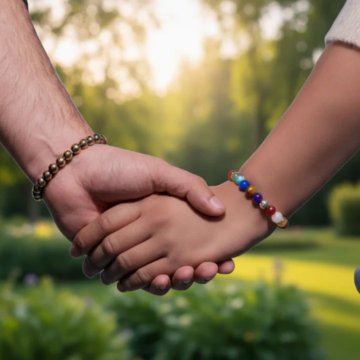 Golden Pyrite and Seven Chakra Bracelet Combo