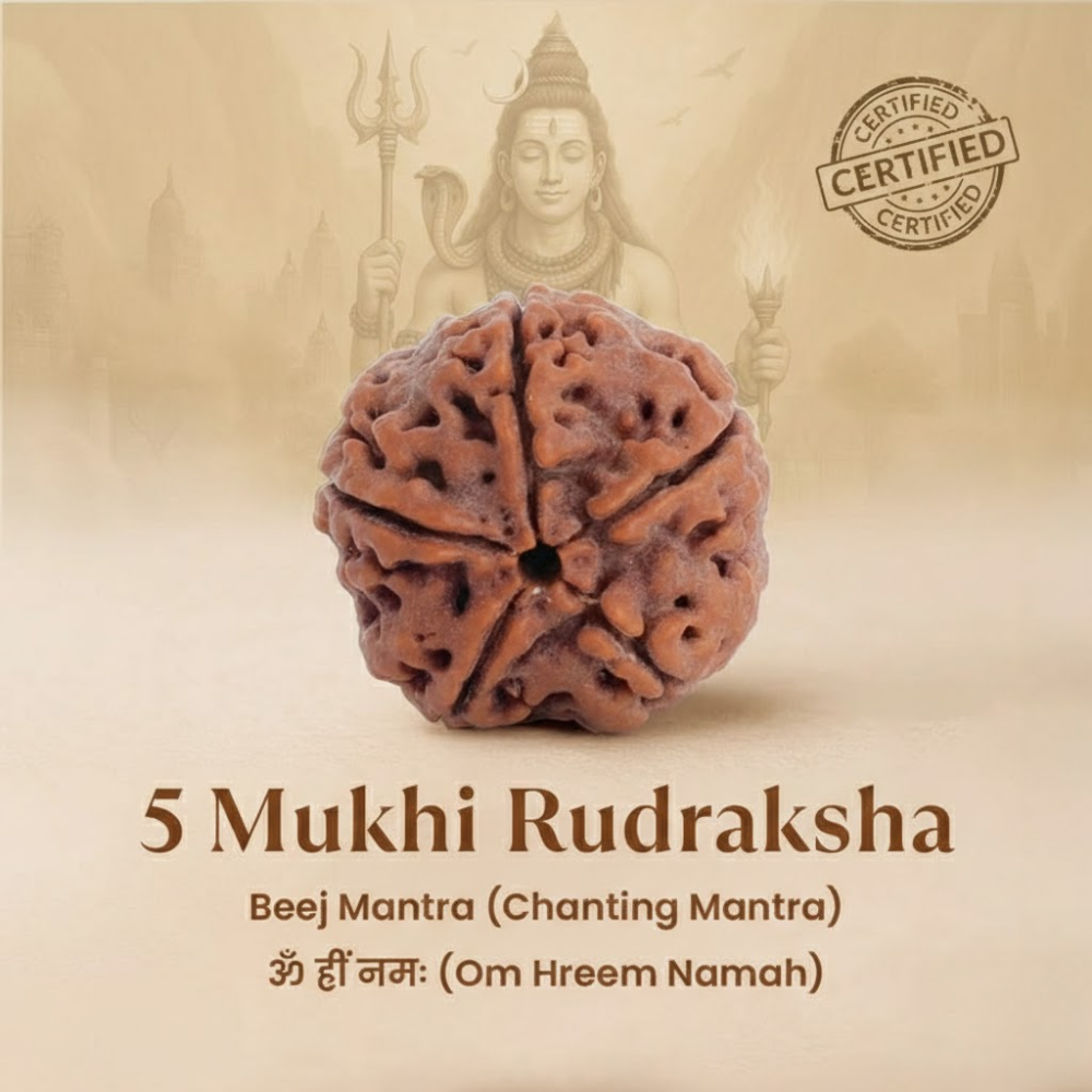 The 5 Mukhi Rudraksha is the most widely worn and highly revered bead in Vedic traditions. It represents the blessings of Lord Shiva in his form as Kalagni Rudra, symbolizing protection, inner peace, and spiritual growth.