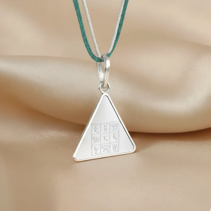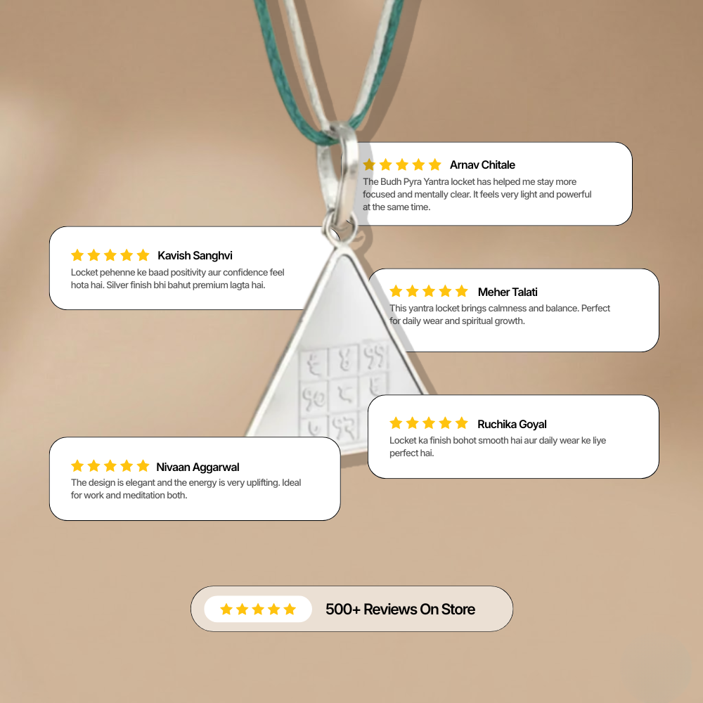 The Budh Pyra Yantra Silver Locket is crafted from pure silver and carries a 999 purity hallmark, ensuring true quality and trust. Its beautiful triangle shape represents balance and steady growth. Light in weight and suitable for both men and women, this yantra is easy to wear every day. Each piece is properly energized (Siddh) by our experienced Vidwan Pandit so you receive its full spiritual strength.